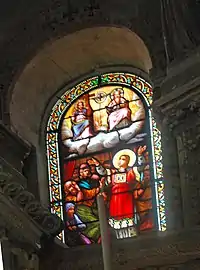 Malheureusement, le vitrail est en partie caché par le retable de l'autel.