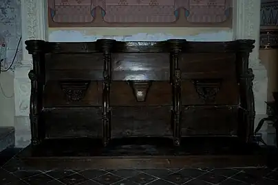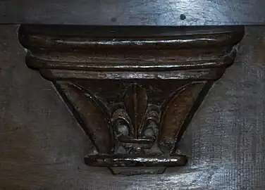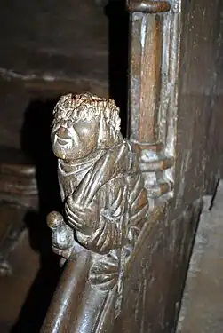 La miséricorde médiane, côté sud, est absente, un escabeau à l'usage de l'officiant en occupe la place.