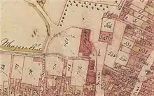L'église Saint-Antoine (au centre de l'image) sur la cadastre napoléonien.