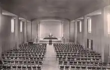 En 1959, les portes extérieures en bois d’Iroko sont posées. Le dallage est posé en 1961, le crépi intérieur en 1963.