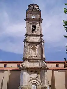 Elle est dotée d'une tour clocher à quatre étages, édifiée entre 1870 et 1875, nettement isolée de l'église, de l'architecte bastiais Guasco. Tout comme l'église de La Porta, son campanile est une tour isolée. Les deux tours clochers sont de même hauteur et les seules construites dans ce style.