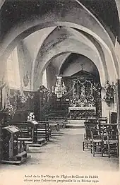 La chapelle dédiée à Marie eut au XIXe siècle - ère mariale dans toute la France - sa voûte peinte en bleu, couleur traditionnellement attribuée à la Vierge[12].