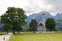 L'église baroque de Saint-Coloman est indissociable du paysage de Schwangau, avec le château de Neuschwanstein en arrière-plan. Sous sa forme actuelle, elle date du XVIIe siècle. Elle est nommée d'après saint Coloman, pèlerin irlandais qui a séjourné à cet endroit durant l'été 1012.