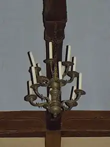 Dans la chapelle de la Vierge est attaché un lustre à douze branches en cuivre, pesant 20 kilogrammes. Datant de 1605, il a été offert à la paroisse par l'un de ses vicaires, Robert Fristeau. Les branches de ce lustre peuvent être placées à volonté dans les rainures[a 1]. Il est classé à titre d'objet depuis 1910[1].