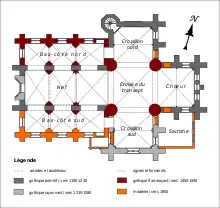 | Fin des travaux | 3e quart XIIIe siècle (portail, baie occidentale de la nef, fenêtres aux extrémités du transept) |
