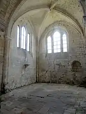 Chapelle sud, vue vers l'ouest dans le croisillon.