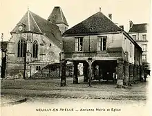 Sous la Révolution française, les hiérarchies ecclésiastiques traditionnelles sont bouleversées, et le prieuré est dissout. La chapelle de l'Ecce homo, bâtie en 1711 à la limite sud du bourg, là où l'incendie s'était arrêté, est démolie en 1793[7]. L'ancien doyenné de Beaumont, traversé par la limite administrative entre l'Oise et la Seine-et-Oise, est départagé entre le diocèse de Beauvais et le nouveau diocèse de Versailles. Pour Neuilly-en-Thelle, le diocèse reste inchangé. Puis, sous le concordat de 1801, le diocèse de Beauvais est annexé au diocèse d'Amiens, avant d'être rétabli en 1822. Le régime concordataire n'accorde, sous le Premier Empire, qu'une unique paroisse par canton. En l'occurrence, elle est sise à Chambly, alors que Neuilly-en-Thelle, chef-lieu de canton, doit se contenter du statut d'une succursale[6]. La Révolution n'a pas emporté le mausolée de Charles-Henri de Fresnoy, dit Tempête, qui servit à Henri III, Henri IV et Louis XIII, et fut assassiné le en descendant de carrosse. « Anne de Vaudetar, sa femme, lui fit ériger un tombeau qui consistait en une table élevée de huit pieds sur deux colonnes de marbre noir, portant sa statue de grandeur naturelle en marbre blanc ; il était représenté armé de toutes pièces, à genoux sur un prie-Dieu, son casque à terre près de lui. Cette statue qui passait pour un chef-d'œuvre de sculpture, fut transférée vers 1800, après avoir été mutilée, au château de Lamberval, puis à la vente du domaine, dans la ferme d'Ercuis qui en dépendait, et d'où elle a été retirée depuis » (Louis Graves)[3]. Un bas-côté (de toute évidence celle de la nef) est reconstruite en 1842[6]. Les chapiteaux dans le style du milieu du XIIIe siècle[8], qui ont l'allure néo-gothiques, pourraient dater de la même campagne de travaux. Aucun autre élément de l'église ne date en effet du milieu ou de la seconde moitié du XIIIe siècle. L'église est classée monument historique par arrêté du [2]. — Aujourd'hui, Neuilly-en-Thelle est affilié à la paroisse Saint-Louis-en-Thelle avec siège à Chambly, qui rassemble les communes de l'ancien canton de Neuilly-en-Thelle jadis comprises dans le doyenné de Beaumont. Cette paroisse réunit quatorze églises, et les célébrations du dimanche sont réservées à deux parmi eux, ce qui ne laisse que la messe anticipée du samedi à 18 h 30 pour les douze restantes. La fréquence des messes ne dépasse donc pas une tous les deux mois[9].