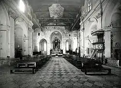 L'intérieur est une croix latine, avec une seule nef et a été entièrement rénové au XVIIIe siècle ; à la fin de la Seconde Guerre mondiale, une tentative a été faite pour le ramener à sa structure d'origine.