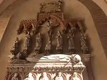 À gauche de l'entrée du portique se trouve la tombe de Paola Bianca. Elle est située sur un haut socle dont les côtés comportent des représentations de saints veillant sur le sommeil éternel de la défunte[6].