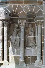 Les murs nord et sud du porche abritent deux beaux bas-reliefs figurant l'Annonciation et Habacuc.