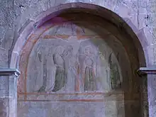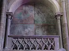 Deux autres peintures murales reprennent le thème de la Crucifixion du Seigneur, seul le nombre de personnages au pied de la Sainte-Croix variant. Très probablement du XIVe siècle d'après leur style, elles sont découvertes lors des travaux entrepris par Ringeisen en 1860 qui en fait un relevé, puis restaurées en 1865 et 1970. Le registre inférieur Sud figure trois saints et la peinture Nord représente la Sainte Vierge, saint Jean, saint Jean-Baptiste, ainsi que quatre saintes. La peinture de la niche Nord est classée monument historique depuis le au titre d'objet. Une autre peinture, datant elle aussi du XIVe siècle et représentant le Christ en croix entre la Sainte Vierge, saint Jean, saint Pierre et saint Paul, surmontant une frise de saints. Elle est également classée monument historique depuis 1974.