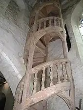 Au XVIIe siècle, l’église connaît une troisième campagne de travaux. La voute de la nef est mise dans l’état actuel, les bas-côtés sont surélevés pour être au niveau de la nef[2] et sont percés de fenêtres en plein cintre. Les voutes du chœur et des deux chapelles sont remplacées par des voutes en berceau. Ces deux chapelles sont fermées par des retables de pierre. Le superbe escalier de bois à vis qui dessert le clocher date de cette époque.