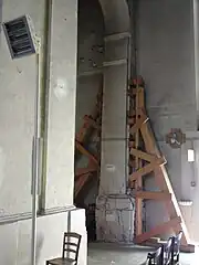 D'autres travaux sont effectués en urgence: la réfection du porche en 1996, l'étayage du pilier sud-ouest en 1997].