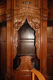 Le confessionnal de « Mr le Vicaire » est d'un type très semblable, avec des anges tenant le roseau de la Flagellation du Christ, tandis que celui de « Mr le Curé » est tout différent : sa loge médiane est flanquée de pilastres cannelés et ornée de belles draperies sculptées dans le chêne et ornées de têtes d'angelots.