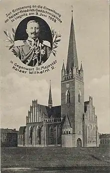Le bâtiment est construit sur le site de la Chartreuse de Legnica, qui avait été fermée en 1548. Sa construction commence en 1904, il est dédié à la mémoire de l'empereur Frédéric III[1].