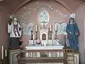 Au-dessus du maître autel, un crucifix est accompagné à ses pieds d'un groupe sculpté représentant la Vierge et saint Jean l'Évangéliste.