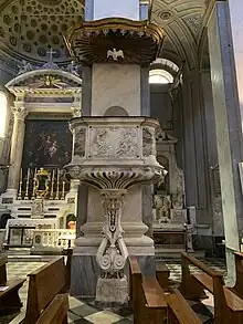 La chaire de marbres polychromes date de 1781. Elle est l’œuvre des artistes génois Gaetano Torre, Gianandrea Torre et Domenico Orsolino[4].