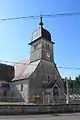 L'église est de plan allongé et possède trois nefs en voûtes d'ogive[1]. Le clocher est surmonté d'un dôme à l'impériale, typique de la Franche-Comté ; l'église est couverte d'un toit à longs pans qui a la particularité d'être métallique[1].