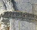 - « Les fenêtres sont ornées, comme celles de Caupenne, d’archivoltes, de colonnettes, de chapiteaux et de tailloirs qui se prolongent par un bandeau du mur. Les archivoltes portent des billettes, les autres éléments un décor végétal – de grandes palmes, des frises de palmettes, des feuilles lisses, des pommes de pin. Bien que l’ensemble ne soit certainement pas antérieur au milieu du XIIe siècle, il présente encore des détails – forme de la corbeille et des palmes, astragales doubles torsadés –, et surtout des procédés – la taille en biseau en particulier – qui sont des survivances d’un passé lointain. »