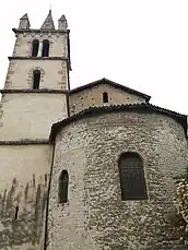 Façade orientale de l'église avec le clocher et le chevet. | |||||