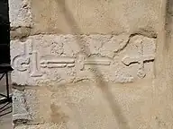 On retrouve tout d'abord à l'angle du clocher (sur le mur sud) l'inscription d'une pierre tombale réemployée appartenant à un maréchal-ferrant vifois. C'est une dalle de calcaire de 1,47 m de longueur sur 0,48 m de largeur possédant plusieurs motifs : un fer à cheval, des tenailles, un marteau et une poignée d'épée en forme de croix tréflée[2]. Cette inscription semble remonter au XVe siècle[2].