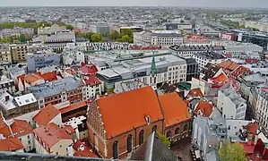 Les dominicains font reconstruire l'église, telle qu'on la voit aujourd'hui, au début du XVIe siècle dans le style gothique de l'Allemagne du nord avec du côté occidental un pignon à gradins remarquable, surmonté du coq du reniement de saint Pierre en forme de girouette. Le portail est de style Renaissance. Un petit clocheton surplombe la toiture du côté est.