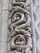 « Le portail de l'église de Saint-Lazare d'Avallon, qui est un des exemples les plus remarquables de l'architecture fleurie du XIIe siècle, possède des colonnettes à pans, torses, taillées avec une rare perfection dans un seul morceau de pierre. L'imagination des derniers architectes romans va très-loin dans l'ornementation des colonnettes, et jusqu'à leur donner l'apparence d'un corps élastique, flexible. Sur les ébraiements de cette même porte de Saint-Lazare d'Avallon, nous voyons un fût de colonnette torse qui présente un réseau de cordelettes[5]. »