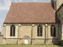 Nef, élévation sud, avec ancienne fenêtre haute.