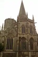 De l'église construite entre 1430 et 1540[4], il ne reste rien de sa nef du XVe siècle[5], ni de son dôme central byzantin, œuvre de Richard Gobey[6], du début du XVIIe siècle[5]. Il ne subsiste de l'église, d'avant sa ruine en , qu'une partie du côté droit du croisillon et son chevet gothique flamboyant qui ont pu être restauré. Son chœur rayonnant fut édifié par la riche bourgeoisie marchande sous le règne réparateur de Louis XI[7].