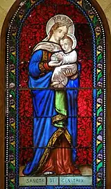 Le vitrail de l'abside Sancta Dei Genetrix a été réalisé en 1875 par Jean Besseyrias, peintre verrier de Périgueux. Il a été restauré en 2002 par Madame Aletta Bakker van der Have.