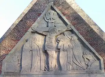 L'édifice est construit en brique et béton armé selon un plan basilical traditionnel avec nef et chœur, sans transept. Le porche est précédé d'une sorte de narthex avec un tympan sculpté, œuvre de Raymond Couvègnes. Le chœur est à chevet plat.