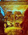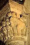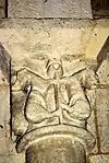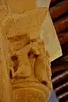 • Sur le tailloir, au-dessus de la tête de Jésus, brille l'étoile qui avait guidé les Mages. On voit également, parmi les rinceaux, deux autres spectateurs, un homme et une femme.