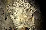 On trouve quatre chapiteaux romans à l'entrée du sanctuaire et deux chapiteaux autour la fenêtre axiale de l'abside.