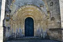 L'érosion est assez important et il est difficile d'identifier toutes les activités. On voit 28 personnages se livrant à des occupations agricoles, parfois accompagnées d'animaux. Sur la clef de l'arc on trouve une représentation des quatre évangélistes (le Tétramorphe). L'archivolte externe contient deux files de personnages convergentes, qui se tiennent par les mains.
