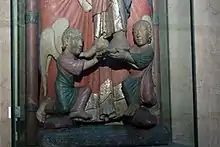 • Datant de la première moitié du XVIe siècle, les quatre stalles du chœur en bois sculpté[4].