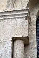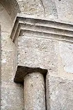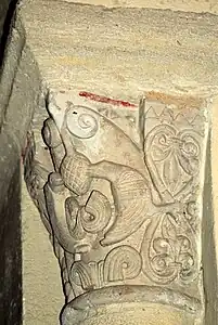 Le chapiteau sud de l'arc est décoré avec des feuillages.