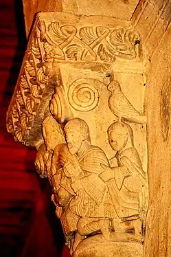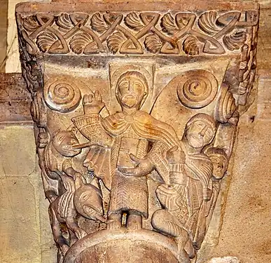 Le chapiteau de l'arc triomphal relate la deuxième épisode ; un chapiteau de l'abside relate le premier épisode.