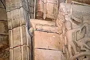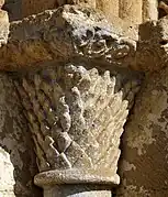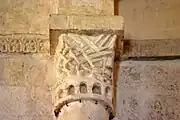 Le chapiteau a été sculpté in situ et le tailloir est, en partie, resté à l'état brut.