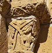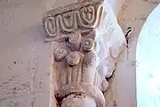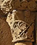 La corbeille d'un des chapiteaux du sud est entourée de feuilles à crochets. Un autre est formé de feuilles surmontées de raisins, avec un tailloir couvert d‘entrelacs.