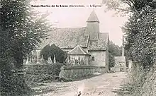 L'église de Saint-Martin-de-la-Lieue sur une carte postale de la fin du XIXe siècle ou du début du XXe siècle.