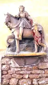 Classé MH, toutes deux du XVe siècle en pierre polychrome, offertes par les Rolin à l'église ; - une statue en pierre XVIe siècle de la Charité de saint Martin portant le collier de Saint-Michel