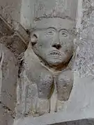 Dans le chœur, les chapiteaux sont historiés par des singes, des animaux s'affrontant. Les huit grands culots représentent une tête énorme collée à une paire de jambes, deux têtes moustachues, des embryons de bras tirant une bouche, un personnage portant deux animaux, un buste, un saint personnage devant un homme enroulé par un serpent[8],[9],[1].