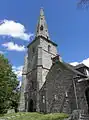 De la chapelle datant de 1474, détruite par les Anglais au XVIe siècle, n'est plus conservé que le clocher, tour carrée flanquée d'un escalier et surmontée d'une flèche octogonale en pierre. Le passage du carré à l'octogone est obtenu par quatre encorbellements simples par superposition d'assises dont la face présente un triangle[1].