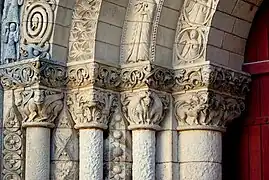 - La troisième voussure est décorée avec des entrelacs et feuillages stylisés.