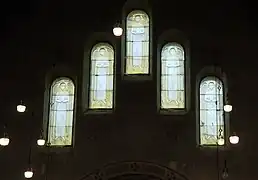 Les verrières représentant des anges sont l'œuvre de René Lalique, plus connu pour ses bijoux "Art Nouveau". Il réalise là des sujets de grande dimension en verre moulé d'une exceptionnelle beauté[3]. Ils ont été posés en 1926 et ont fait l'objet d'une restauration en 2022[4].