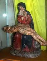 - La pietà en bois polychrome et daterait du XVe siècle.