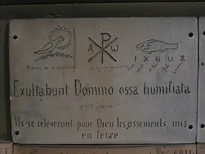 - En 1919, un ensemble de deux peintures monumentales : Descente de croix et Mise au tombeau. Elles sont inscrites[14] à l'Inventaire général du patrimoine culturel.