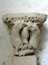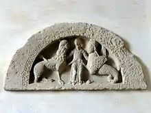 Daniel dans la fosse aux lions - tympan d'un portail roman du XIIe siècle, antérieur à l'église actuelle.