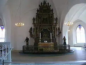 L'autel monumental de forme circulaire, date de 1656 et fut réalisé par Anders Mortensen d'Odense. L'autel présente en son centre une représentation de la Cène avec en arrière-plan la vue de l'église de Nakskov.