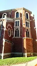 L'église de Rosières a été construite en brique en style néo-roman. Son plan est celui d'une croix latine avec nef à bas-côtés, transept et chœur. Une tour-clocher flanque la façade du côté sud de la nef; il est coiffé d'une flèche recouverte d'ardoises. Le porche d'entrée est surmonté d'une rosace.